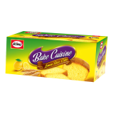 Ingredients: Wheat Flour, Sugar, Corn Syrup, Hydrogenated Vegetable Oil, Fresh Eggs, Skimmed Milk Powder, Corn Flour, Salt, Sorbitol (E-420), Glycerin (E-422), Citric Acid (-330), Baking Powder, Vanillin Powder, Emulsifier Mono & Di Glycerides Of Fatty Acids (E-471), Poly Glycerol Esters Of Fatty Acids (E-475), Preservatives Potassium Sorbate (E-202) & Sodium Benzoate (E-211), Artificial Food Flavors (Lemon) & Permitted Food Color-Tartrazine (E-102