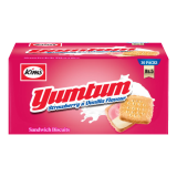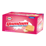 Ingredients: Wheat Flour, Sugar, Hydrogenated Vegetable Fat (Palm White Sat, Fresh Egg, Liquid Glucose, Skim Milk Powder, Starch, Raising Agent (Sodium Bicarbonate E-500, Ammonium Bicarbonate E-503) Preservative (SMS E-2231, Dextrose Powder, Arthicial Food Flavor (Butter, Strawberry, Vanilla Permitted Food Color(E-102, E-127,E-122).